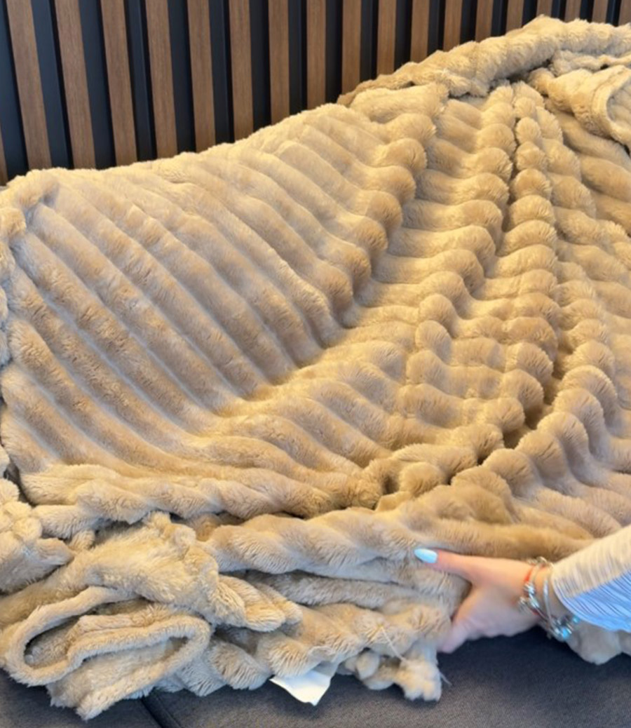 Bucurați-vă de căldură și confort cu acest pled elegant! Textura sa unică cu model geometric adaugă un accent modern și rafinat în interiorul casei. Fleece de înaltă calitate asigură finețe, durabilitate și ușurință în întreținere.
